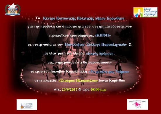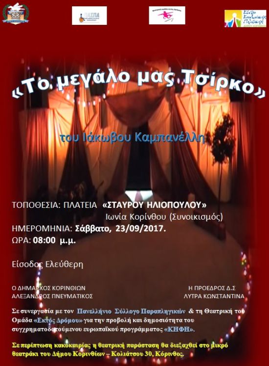 θα διεξαχθεί στο μικρό θεατράκι του Δήμου Κορινθίων