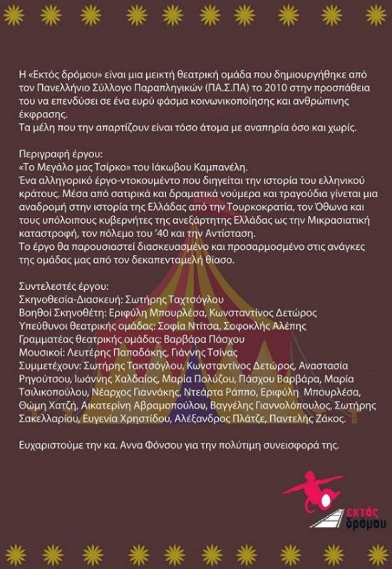 & τη Θεατρική του Ομάδα «Εκτός Δρόμου»